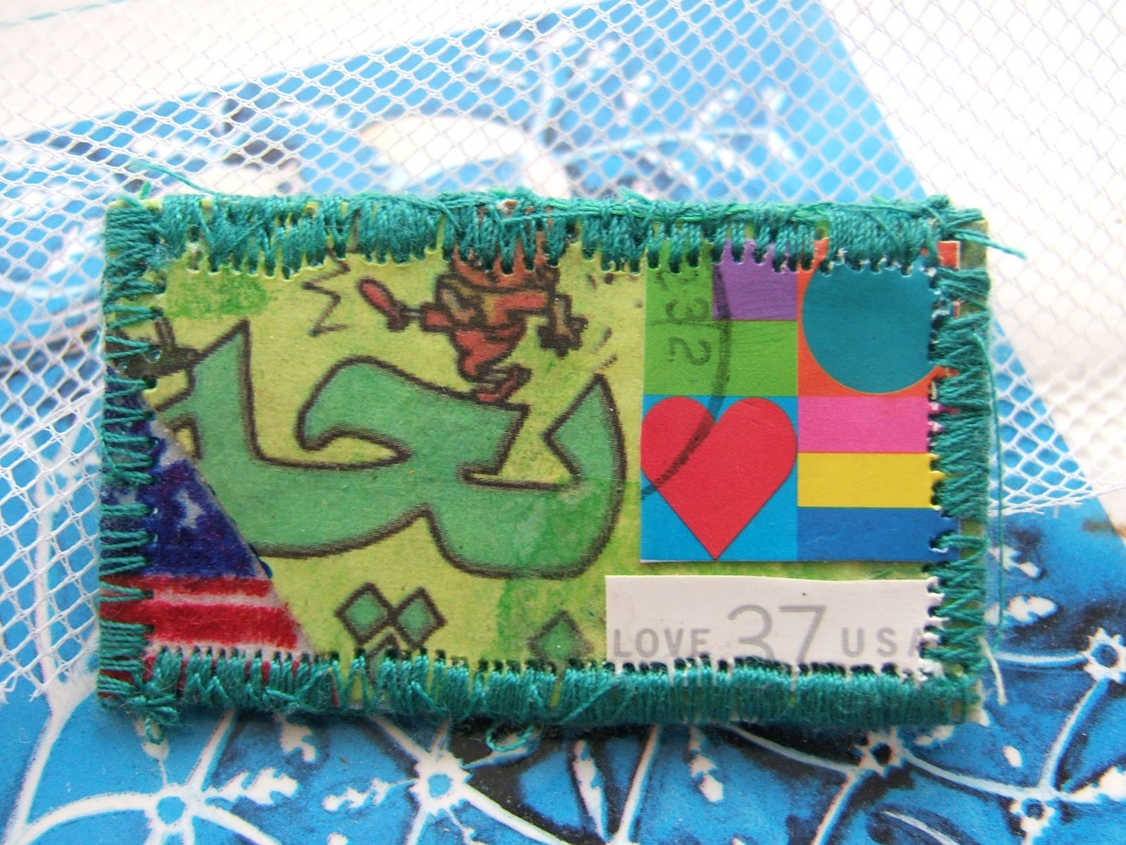 Then there was the layering of images relating to India, mainly maps (but I also included some old Middlesex ordnance survey maps, somewhere just as exotic to me that I have come to call home) postal stamps and text. This was added in different media : ranging from proper collage of photocopied text glued down or cut-outs from food packaging, to special organza inkjet printed and attached to the background.
